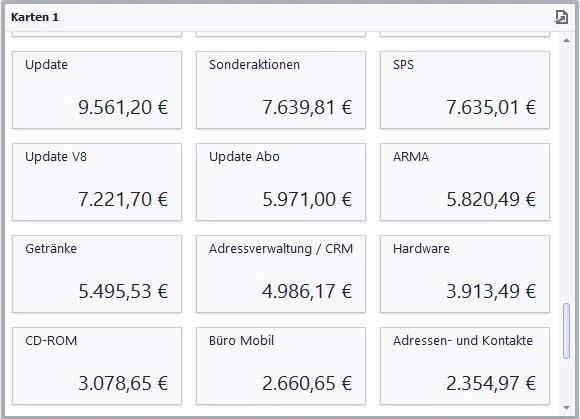 Sie können das Dashboard mit der Warenwirtschafts-, Ticketsystem– & Zeiterfassungsdatenbank oder beliebigen weiteren Datenbanken verbinden und Informationen optisch ansprechend darstellen per Unternehmensauswertung.