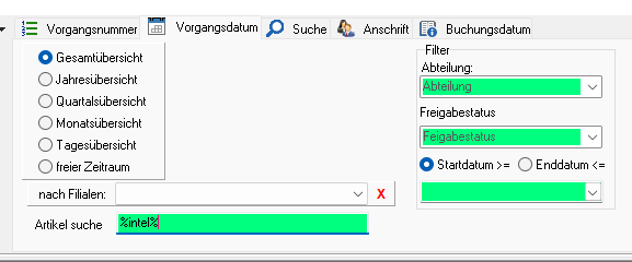 Dank flexibler Selektions- und Filtermöglichkeiten finden Sie relevante Vorgänge in Sekunden.