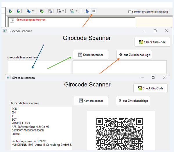 Die schnelle Übernahme von Bankdaten im AFS-Manager erleichtert Überweisungen spürbar und spart pro Vorgang mehrere Minuten. Bankdaten können per Barcodescanner oder Webcam zuverlässig über QR-Codes erfasst werden.