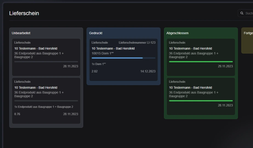 Statusänderungen erfolgen komfortabel per Drag & Drop – direkt im Board, ohne Umwege, ohne zusätzliche Masken.