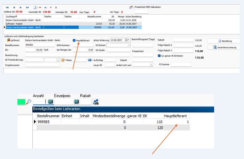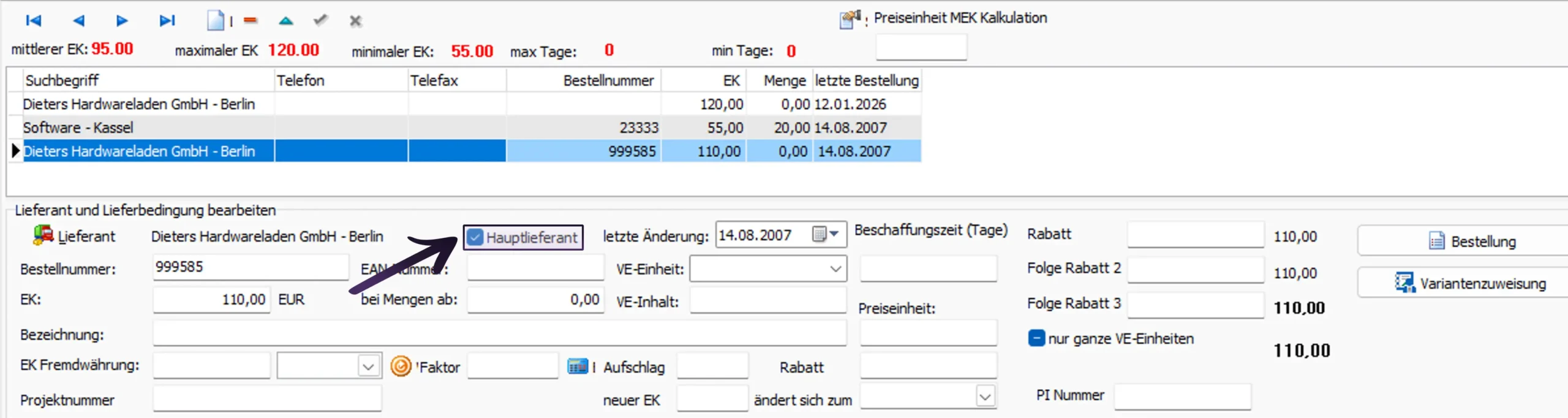 Im AFS-Manager wird beim manuellen Anlegen einer Bestellung nun automatisch der Hauptlieferant als erste Auswahl vorgeschlagen. Das beschleunigt die Bearbeitung, reduziert Fehlzuweisungen und sorgt für einen effizienteren und konsistenteren Arbeitsablauf.