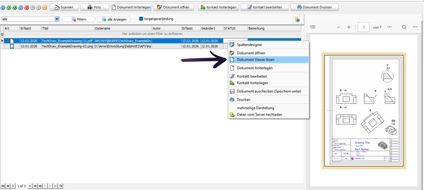 mit der erweiterten Dokumentenverwaltung im AFS-Manager SQL.