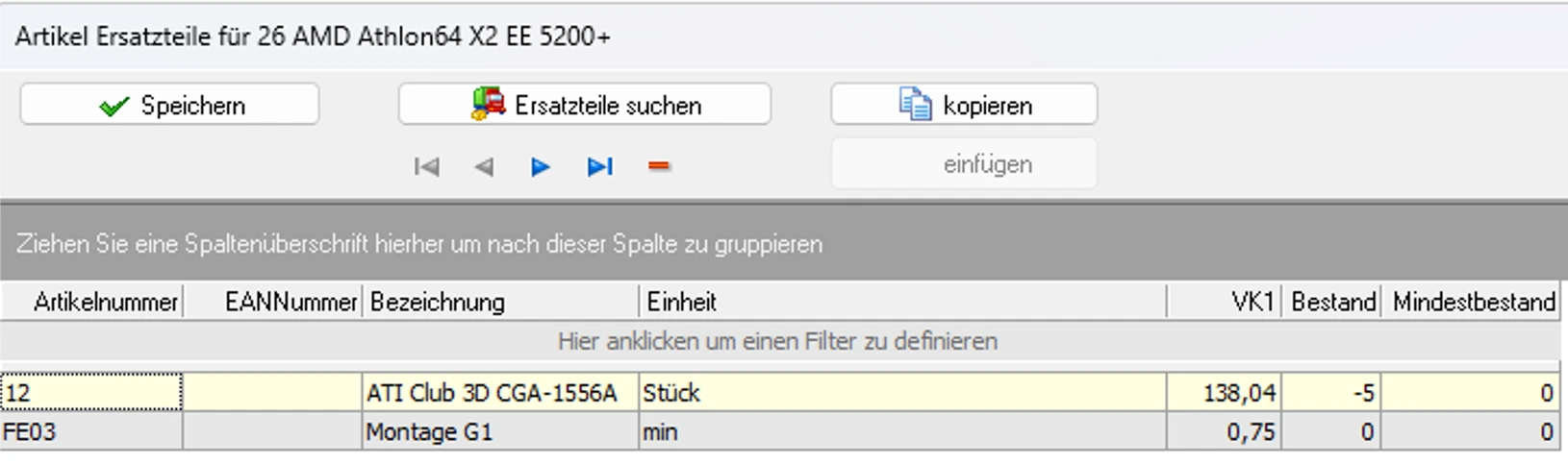 Erweiterte Artikel- & Ersatzteilverwaltung